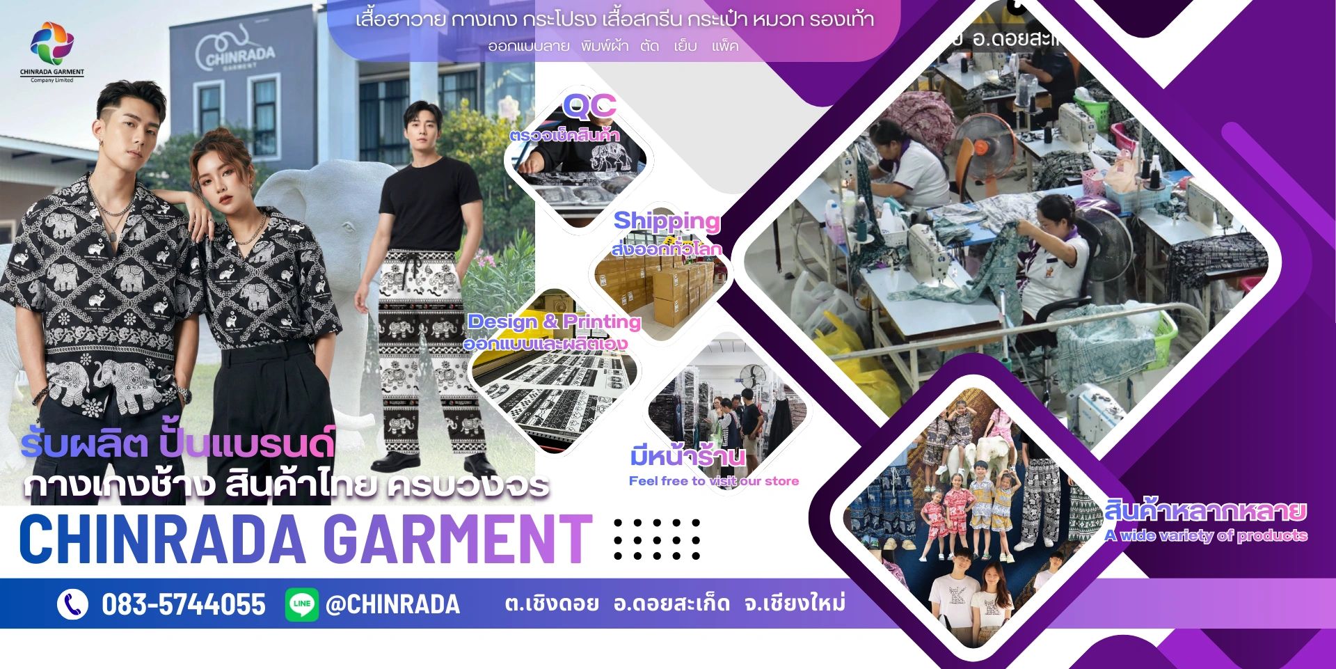 เราคือผู้ผลิตและส่งออกสินค้าที่เกี่ยวข้องกับกางเกงผ้าเรยอน กางเกงลายช้าง ทุกประเภท ตัดเย็บเอง จากพนักงานผู้ชำนาญการ ในการเย็บเป็นอย่างดี คุณภาพส่งออกทั่วโลก มีทีมงานผลิตที่เยอะที่สุด มีการตรวจสอบมาตรฐานทุกตัว รับรองมาตรฐานระดับสากล